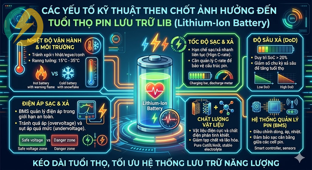 Các yếu tố kỹ thuật then chốt ảnh hưởng đến tuổi thọ pin lưu trữ LIB