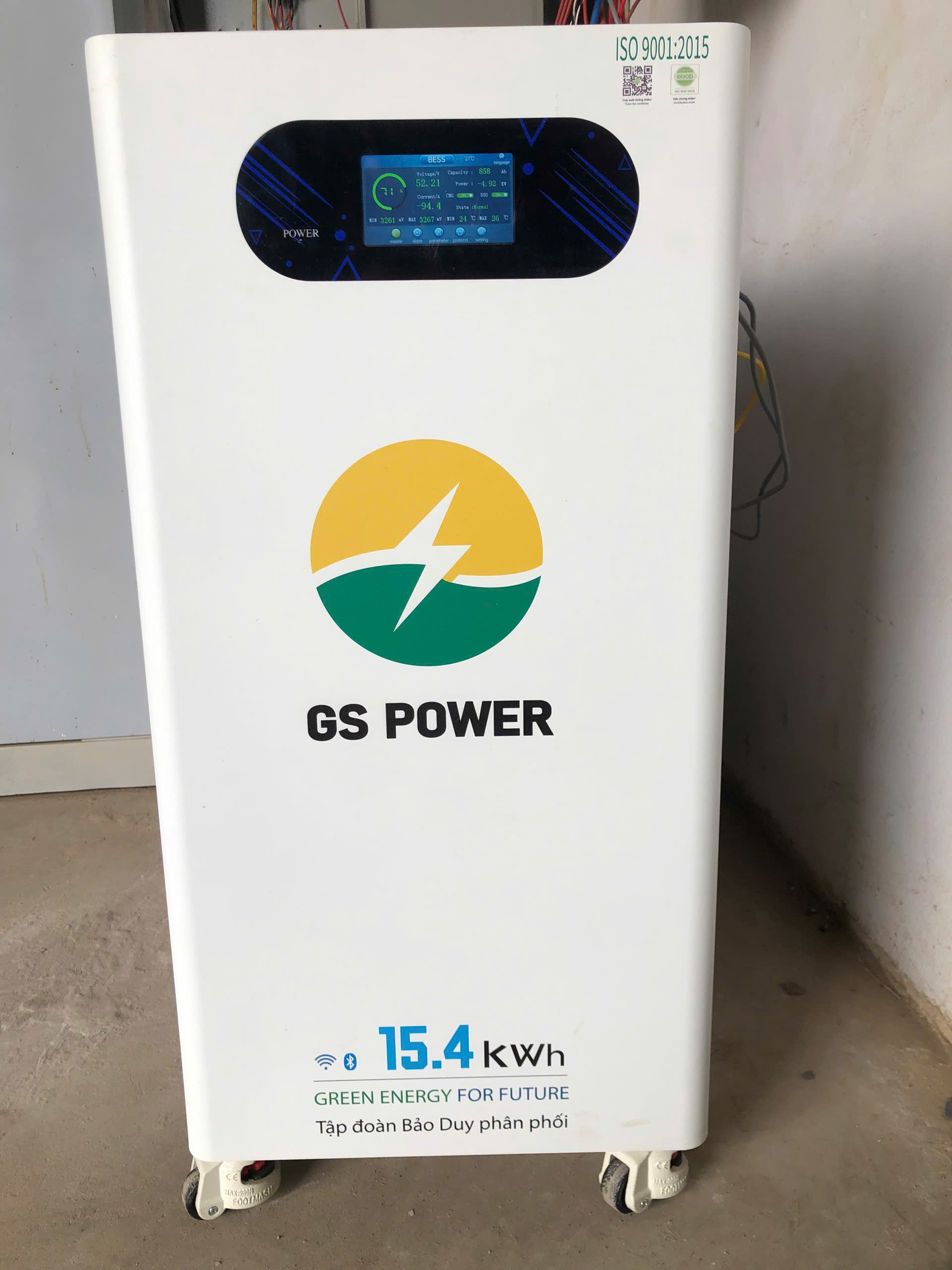 Pin lưu trữ GS POWER 15.4kWh là dòng sản phẩm cao cấp dành cho hệ thống điện mặt trời Hybrid – On/Off Grid. Với công nghệ cell Lithium LifePO4 chuẩn Grade A, tuổi thọ cực cao và khả năng sạc xả mạnh mẽ, GS POWER mang đến sự ổn định – an toàn – bền bỉ vượt trội.